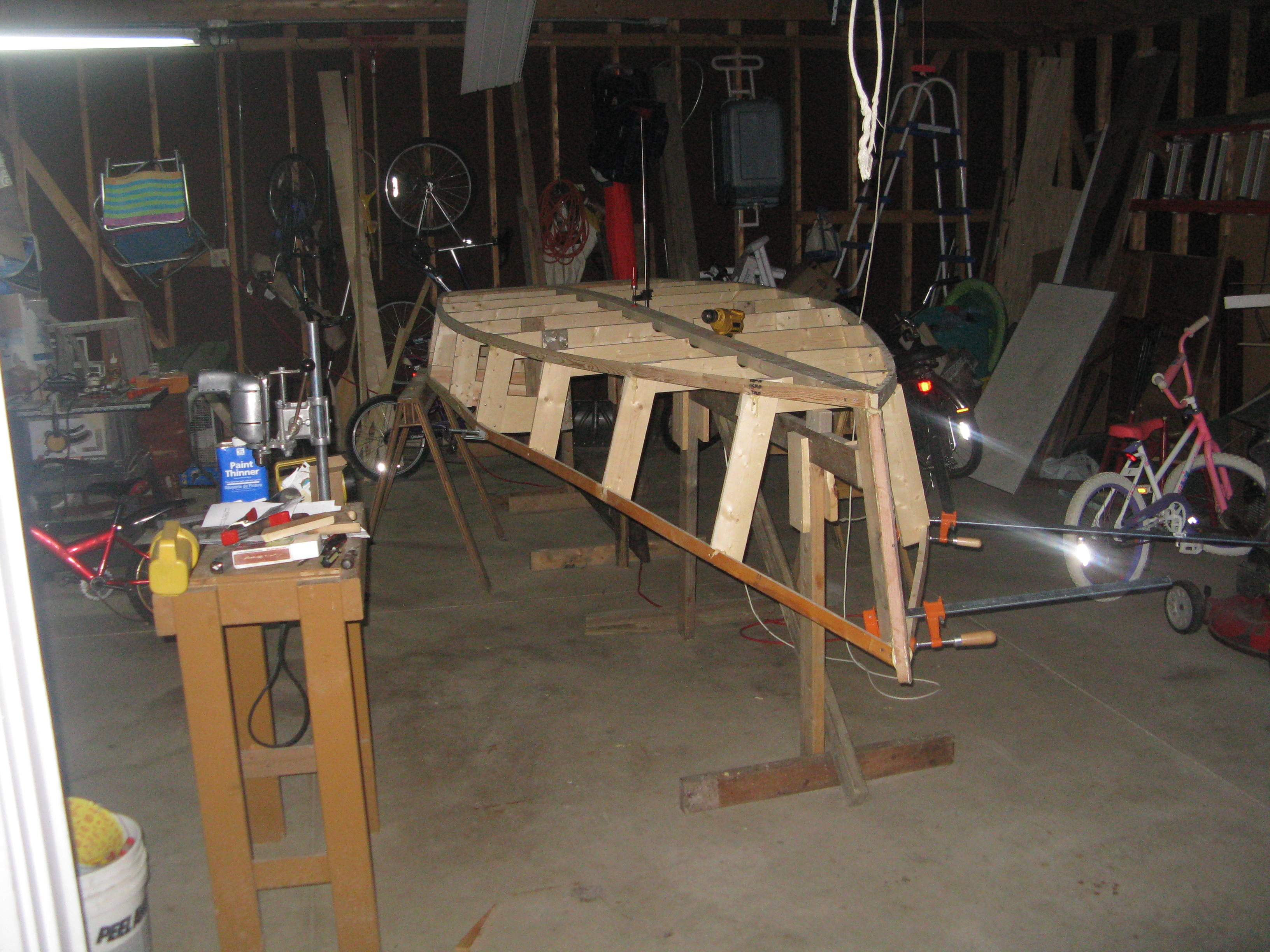 Now I need to “fair” the boat. This is of course the term that professional boat builders use. What they mean is that one has to sand the frame down so that the exterior wood can be applied to even surfaces.