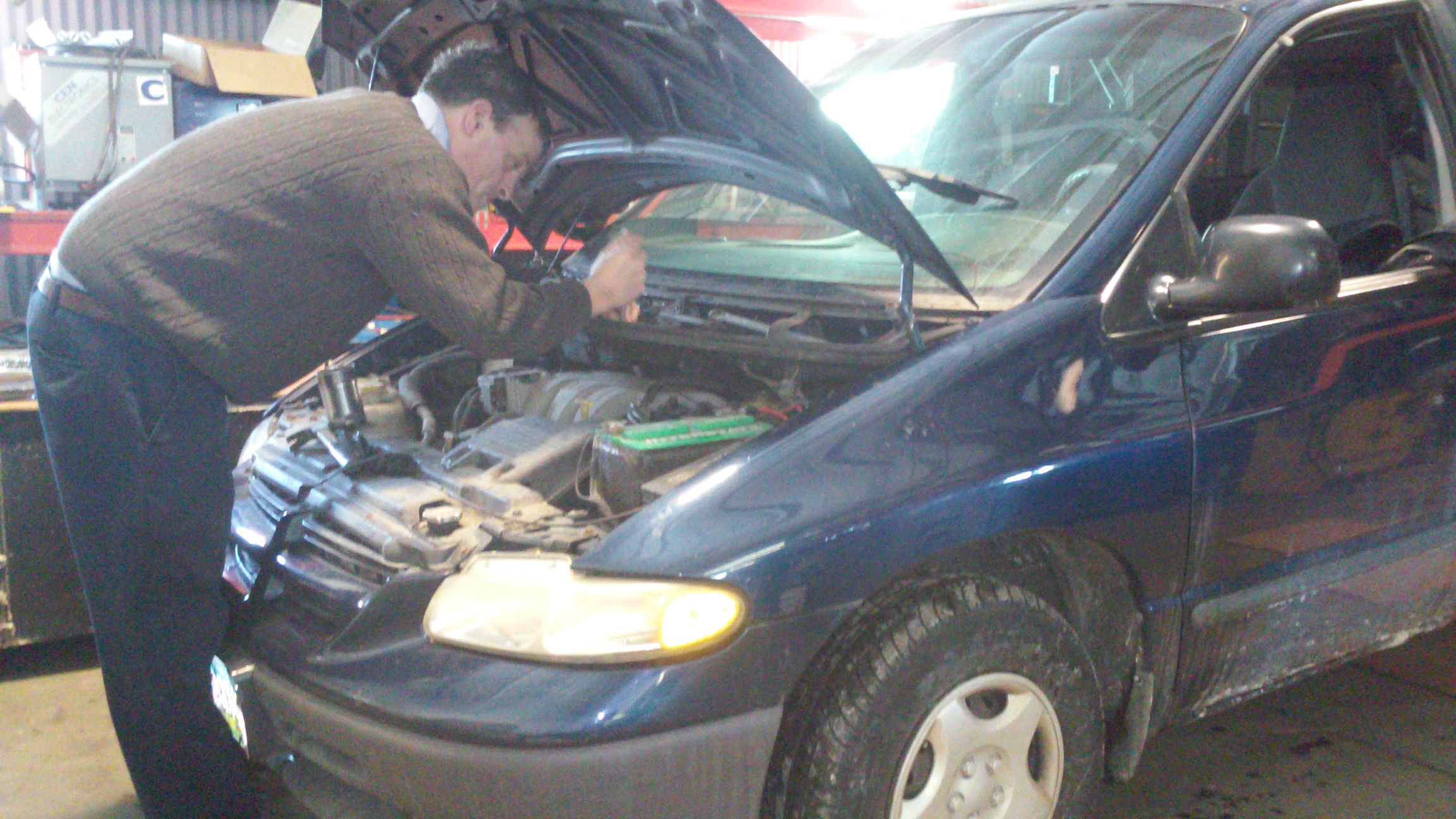 Well, one of my friends just happens to have a glorious shop in which the cool deliberations that accompany complex automotive repair can be done in the warmth of a cozy indoor environment with every imaginable tool at one’s disposal.