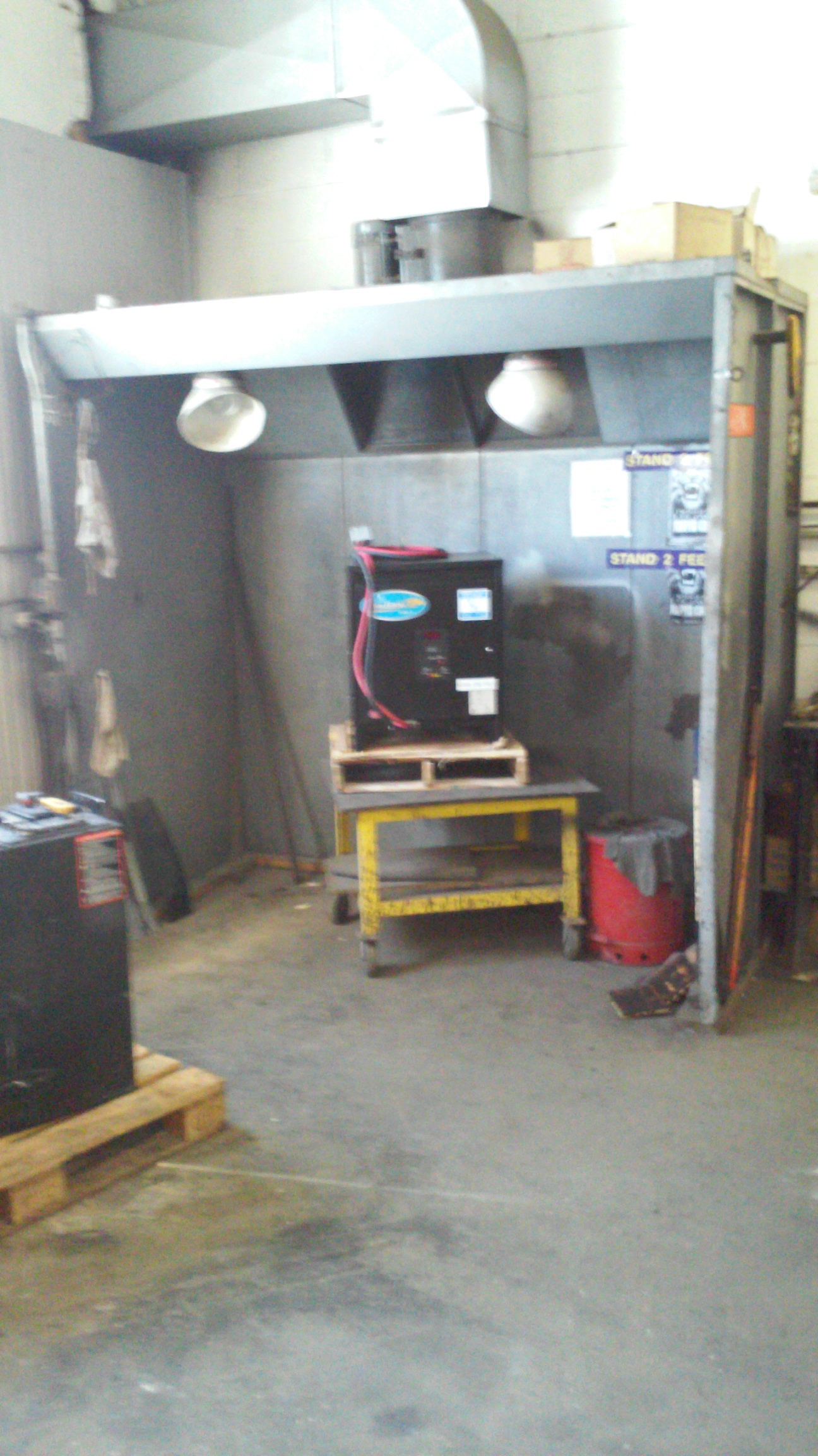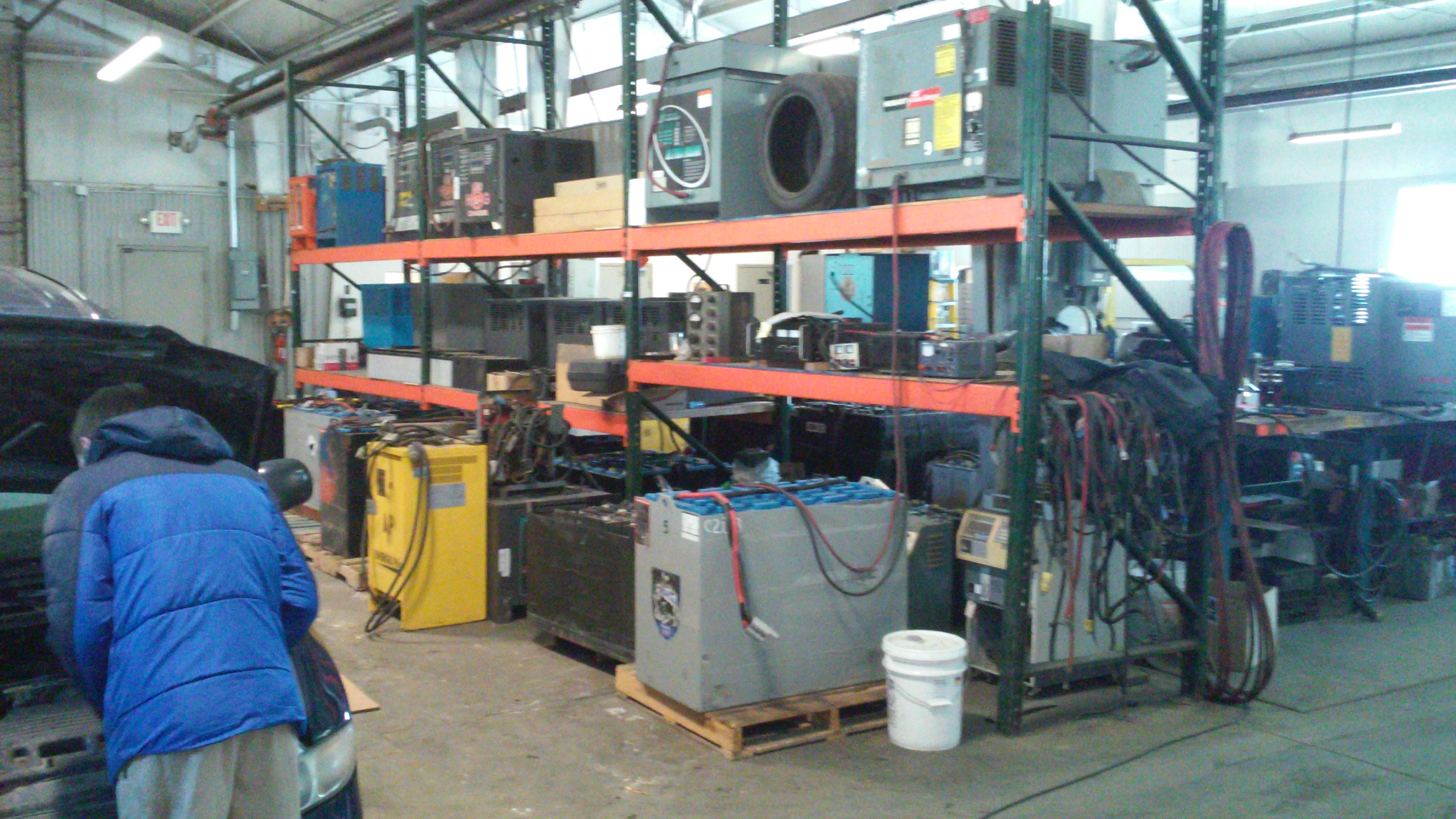 These are extra forklift batteries just in case. Meanwhile son Mark is engaged with the windshield wipers.