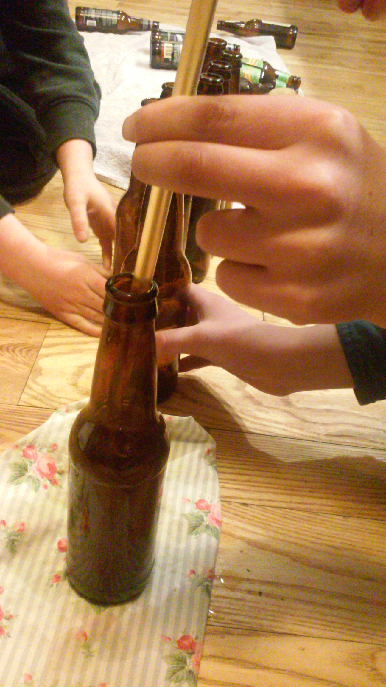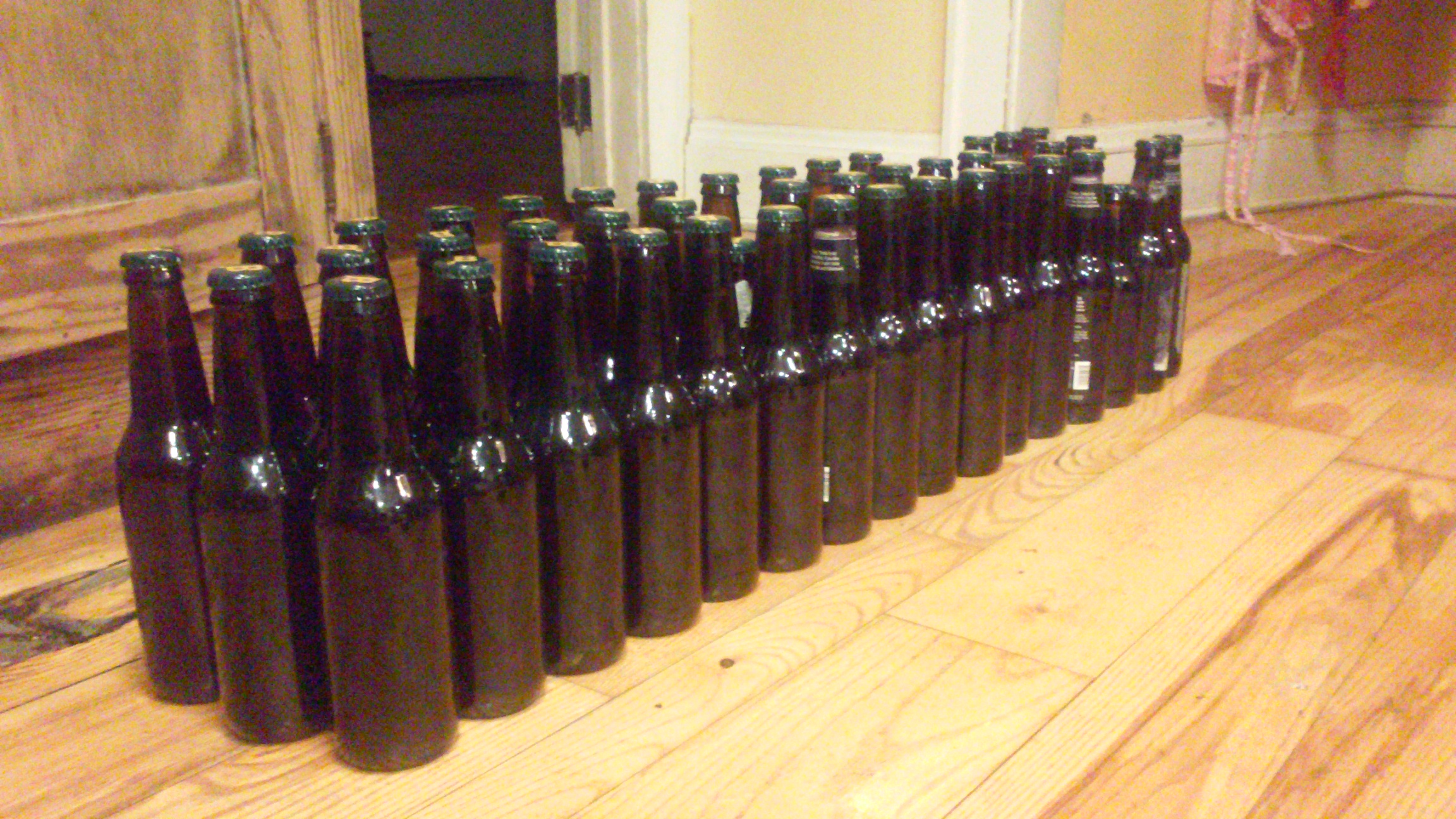 First collect about a pile of about 50 bottles, preferably amber in color.