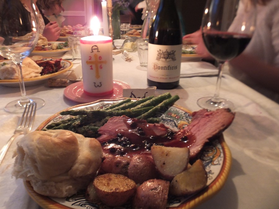 all on one plate with a big buttery warm puffy roll.