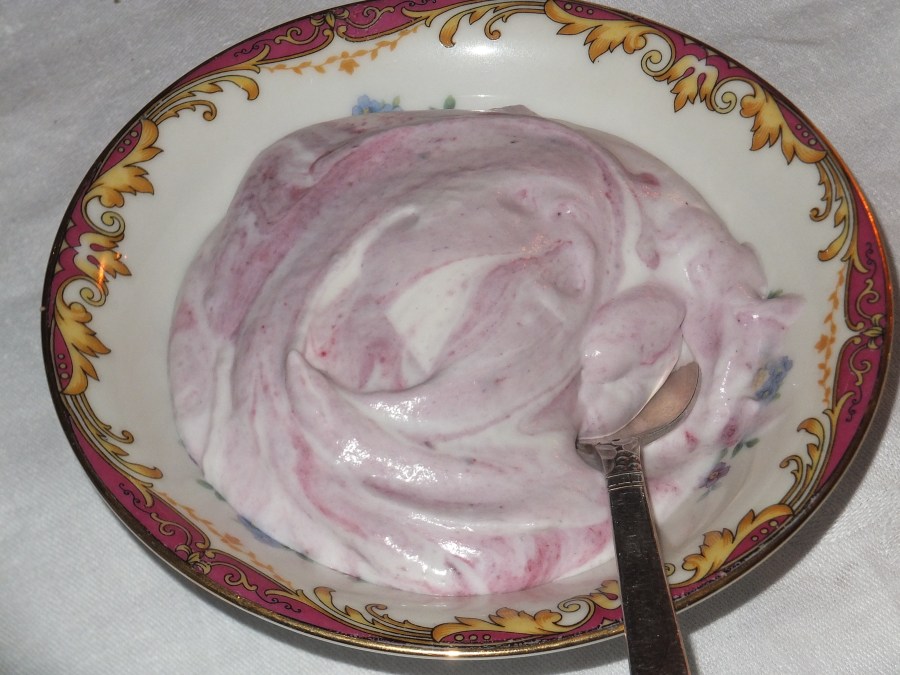 Finally-a very simple “fool” made from fresh blackberries and whipped cream.