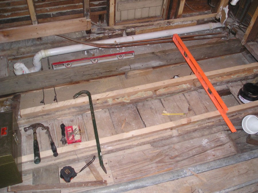 I had to “sister” some of the floor joists to provide a level substratum upon which to lay the 3/4″ ply