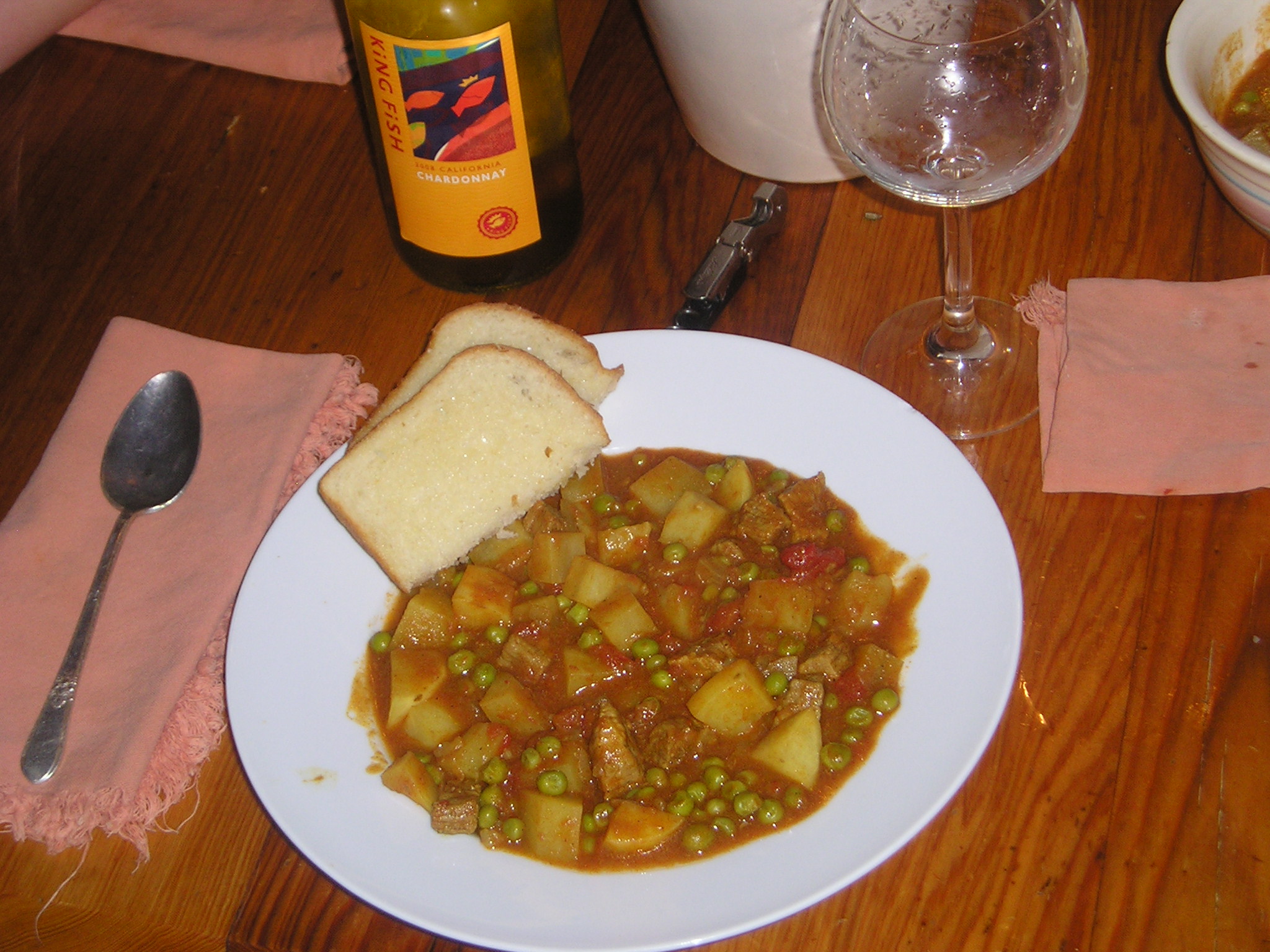 This was an absolutely fabulous stew complemented beautifully by a cold bottle of King Fisher Chardonnay and homeade garlic bread!